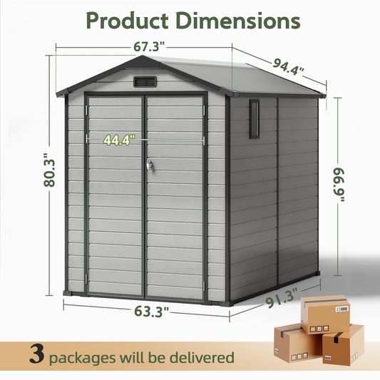 6x8FT Resin Outdoor Storage Shed with Floor, All-Weather Waterproof Plastic Garden Shed for Backyard, Heavy-Duty Storage Shed for Tools, Bikes & Lawn Equipment
