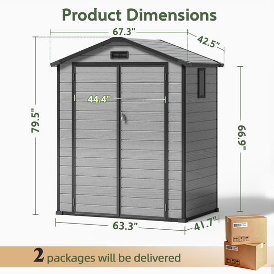 6x4FT Resin Outdoor Storage Shed with Floor, All-Weather Waterproof Plastic Garden Shed for Backyard, Heavy-Duty Storage Shed for Tools, Bikes & Lawn Equipment