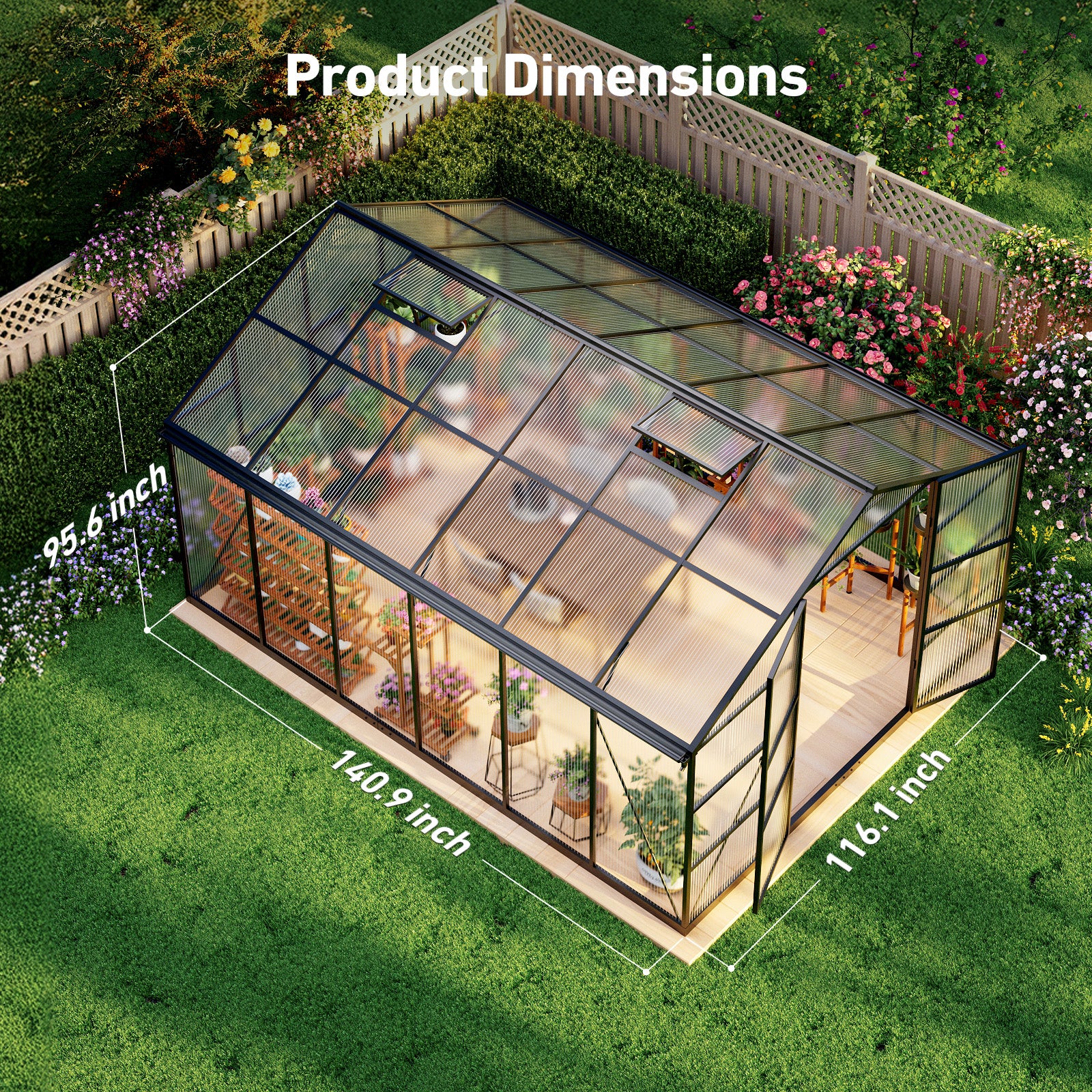 10×12FT Outdoor Walk-in Greenhouse, Heavy-Duty Polycarbonate Greenhouse with Reinforced Aluminum Frame for Garden, Backyard, or Winter Planting