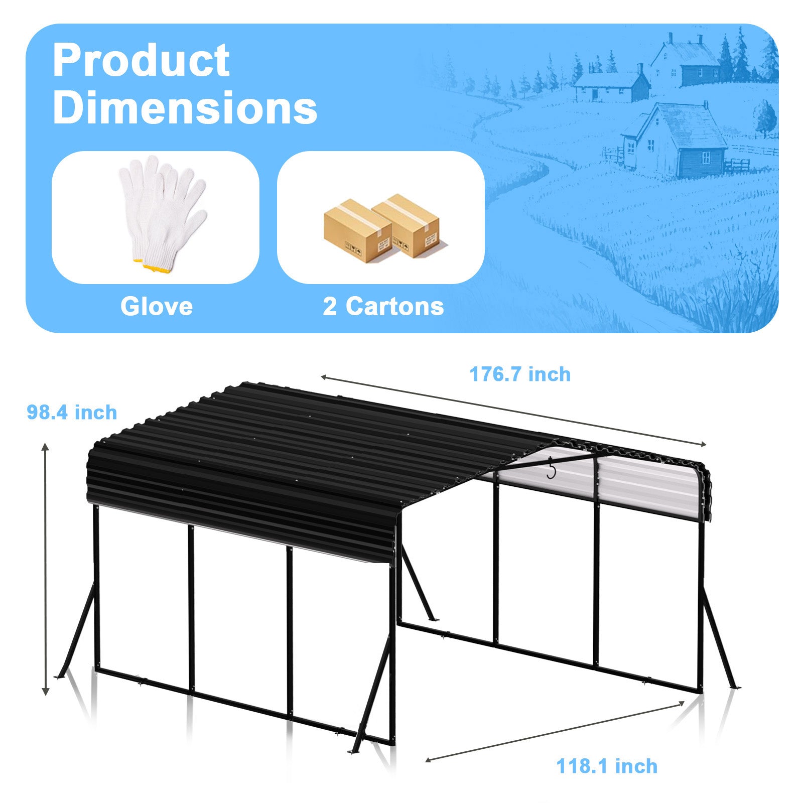 10x15FT Heavy-Duty Metal Carport, Outdoor Car port Canopy with Reinforced Iron Frame, All-Weather Shelter for Cars, Trucks & Boats, Easy Assembly