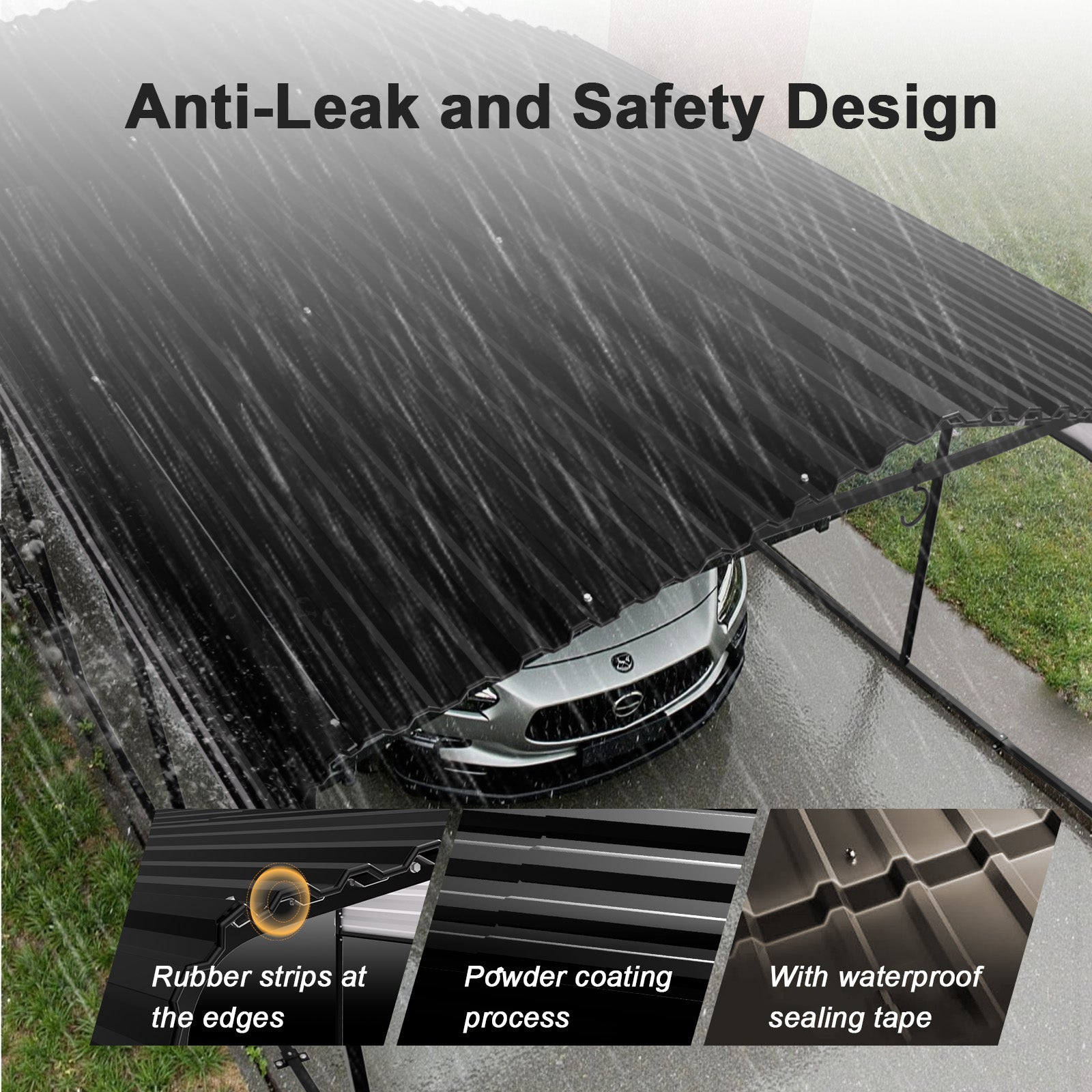 - Safety With Attention To Detail - The roof edges of this Metal Carport are fitted with rubber strips that are soft and non-abrasive. This adds an extra layer of safety to the Carport and reduces the risk of cuts. Gloves are included in the package to minimize the risk of getting cut during installation. This Heavy Duty Carport Canopy is designed with your safety in mind