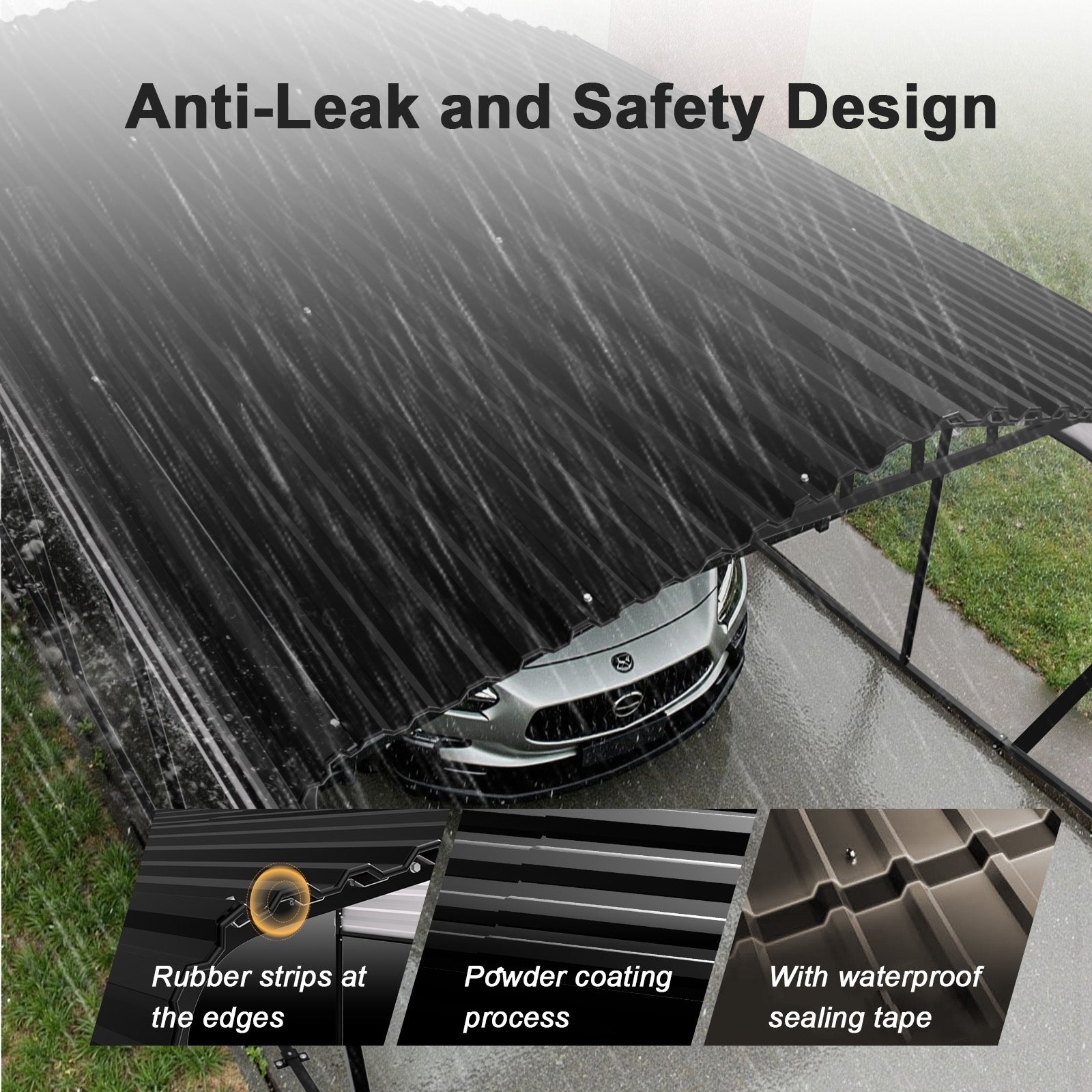 - All-Weather Protection - The Metal Carport uses a galvanized steel roof and powder-coated frame to shield your car from sun, hail, and snow. Plastic spraying enhances corrosion resistance, ensuring long-term durability. This Carport keeps your vehicle cool in summer and prevents snow buildup in winter, making the Heavy Duty Carport Canopy an all-weather solution