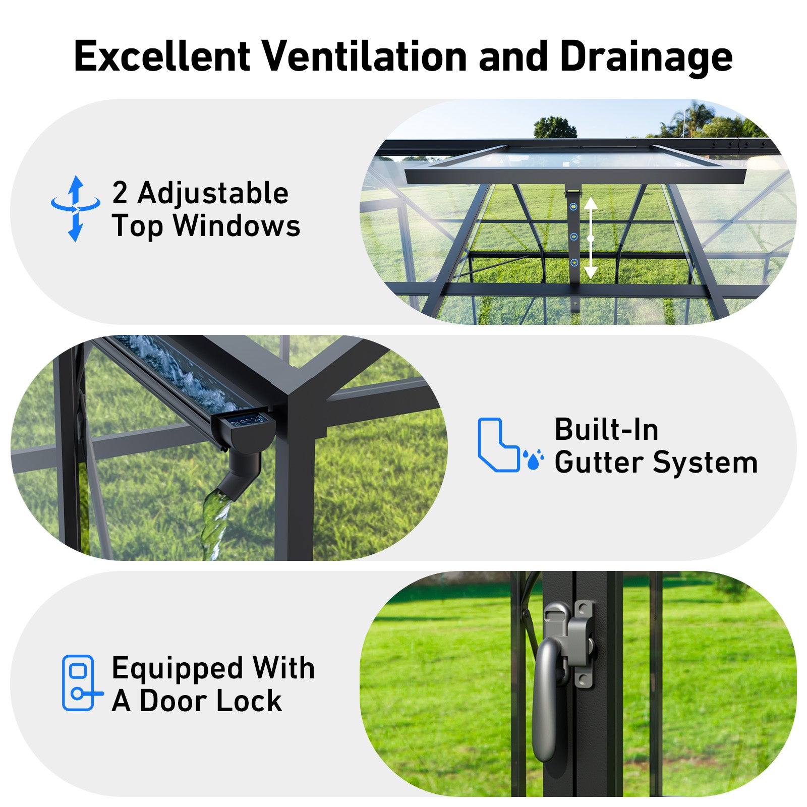 8x10FT Heavy-Duty Greenhouse with Reinforced Aluminum Frame & High-Transparency PC Panels, Walk-in Green House with Quick-Installation Structure for Outdoor Garden